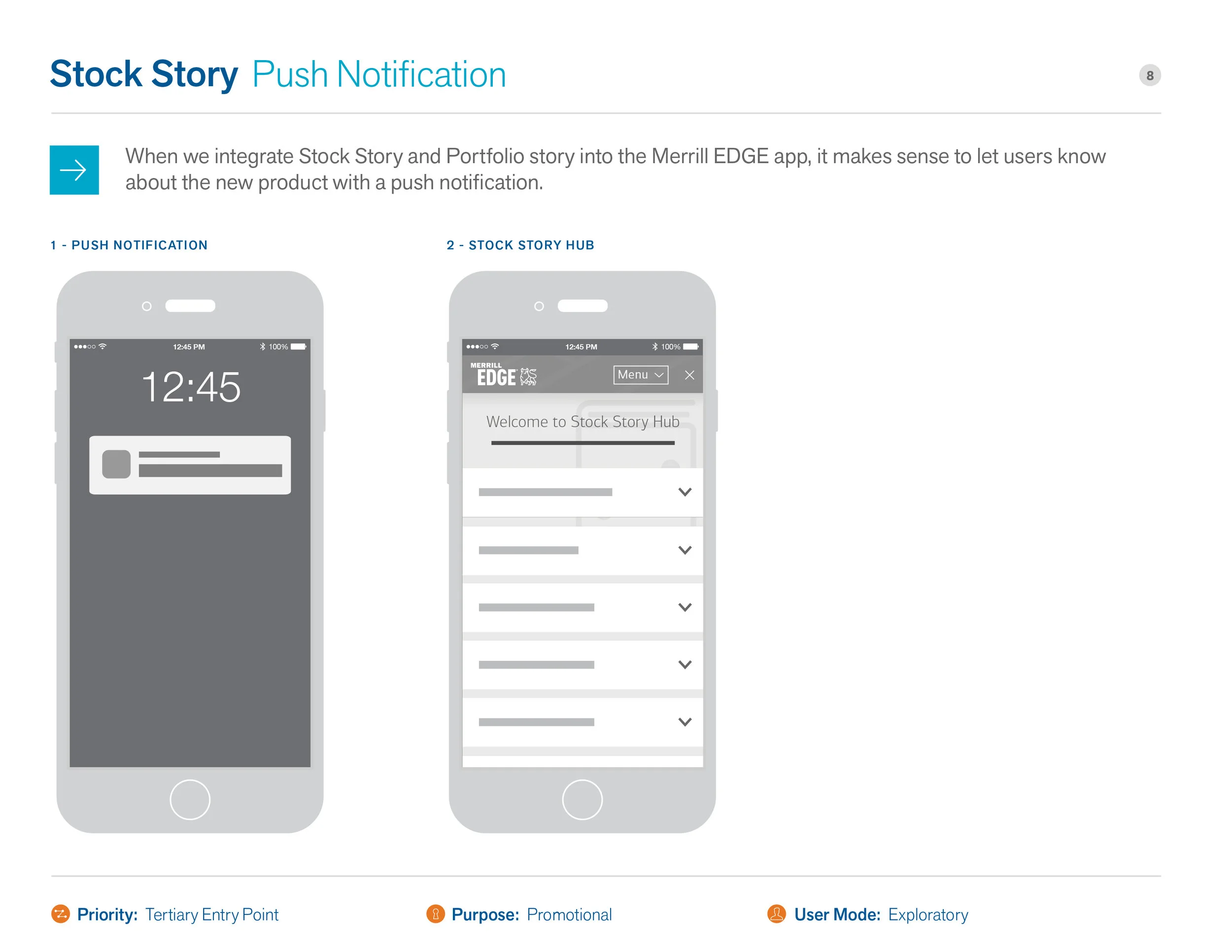 Designed as a desktop experience, Merrill EDGE's "Stock Story" helps users of all knowledge levels make educated investment decisions. The project was de-scoped as a fully responsive site due to an aggressive launch timeline. After a last minute client request, both mobile and tablet features and functionality were included for the initial release.